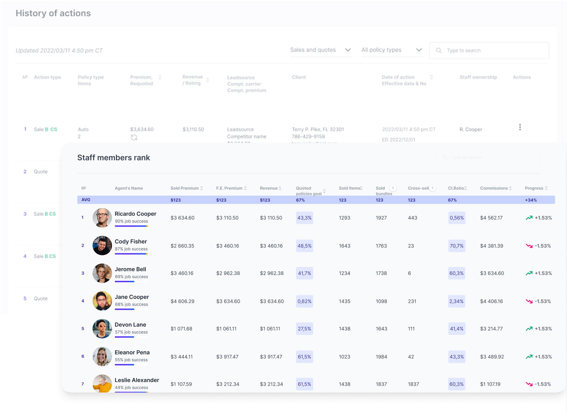 Work with the Chrome extension that enables you to view your current ratings and motivates you toward your goals by entering quotes and sales into the toolbar. Our specialized, thoughtfully-designed dashboard excels at keeping track of how you are performing as a team member, and gives you the support and encouragement you need to keep up your game in the heat of battle.